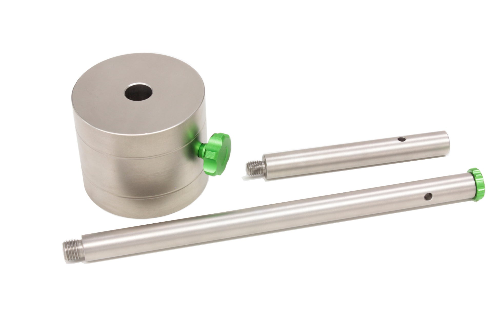 ステンレス製カウンターウエイトとシャフトセット。延長シャフトが付属します。